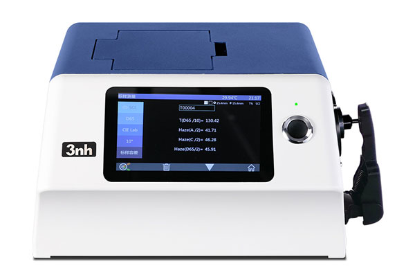 它是通过测量无试样时入射光通量T1与仪器造成的散光通量T3,有试样时通过试样的光通量T2与散射光通量T4:来计算雾度值,即: